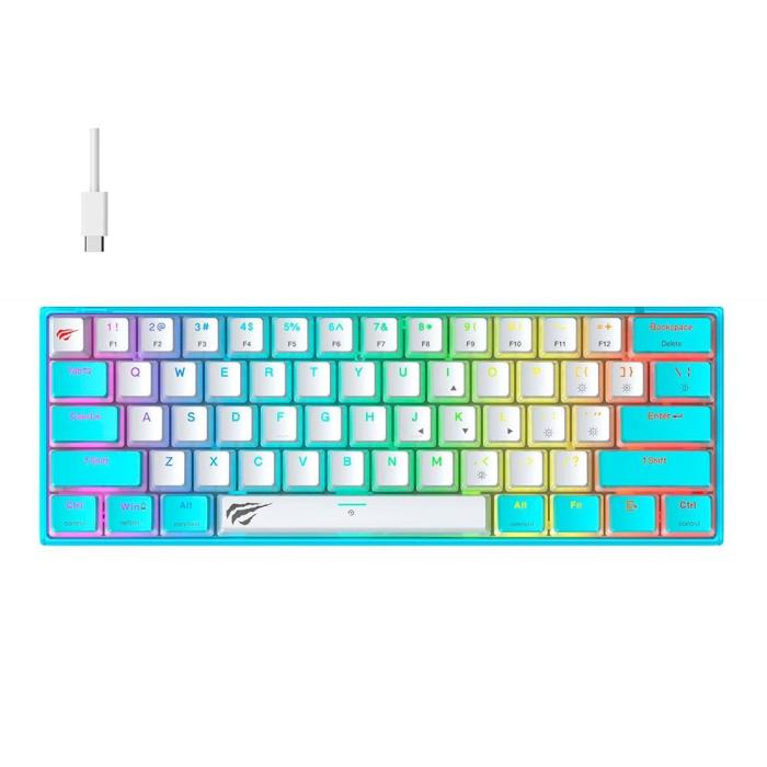 Gaming πληκτρολόγιο της εταιρείας Havit με RGB φωτιζόμενα πλήκτρα σε γλώσσα αγγλικά US. Είναι μηχανικό, καθιστώντας το ιδανικό για gamers όπως επίσης και για όσους επιθυμούν γρήγορη πληκτρολόγηση. Έχει γρήγορη απόκριση και ακρίβεια, καθώς οι διακόπτες του ενεργοποιούνται στα μισά του πατήματος, εξοικονομώντας κινήσεις όταν πληκτρολογούμε. Σε σύγκριση με τα πληκτρολόγια μεμβράνης, αντέχουν περισσότερο στο χρόνο, έχουν όμως το μειονέκτημα του θορύβου που είναι πολλές φορές ενοχλητικό για τους γύρω. Έχει το 60% του μεγέθους ενός τυπικού keyboard, απαιτεί λιγότερο χώρο στο γραφείο και δεν διαθέτει αριθμητικά πλήκτρα στο δεξί μέρος του.