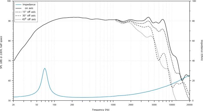 Η αεροδυναμική απόδοση ήταν πρωταρχικός στόχος και για τα δύο εξαρτήματα. Το καλάθι από χυτό αλουμίνιο, με τέσσερα ζεύγη ακτίνων, σχεδιάστηκε για να παρέχει μια άκαμπτη δομή ενώ ελαχιστοποιεί την αντίσταση ροής αέρα γύρω από τον κώνο. Αυτό επιτρέπει στον κώνο να κινείται ελεύθερα, βελτιώνοντας την απόκριση και μειώνοντας τους ανεπιθύμητους συντονισμούς στις μεσαίες συχνότητες. Οι πολλαπλές οπές εμποδίζουν τη συμπίεση του αέρα κάτω από την αράχνη, εξαλείφοντας τους επιβλαβείς συντονισμούς και βελτιώνοντας περαιτέρω τη διαύγεια μεσαίου εύρους. Επιπλέον, το άνοιγμα εξασφαλίζει τη βέλτιστη αποσυμπίεση της στήλης αέρα μέσα στο πηνίο φωνής.