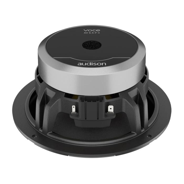 Το γούφερ Audison VOCE II AV 6.5 P II είναι σχεδιασμένο για να προσφέρει εξαιρετική ευκρίνεια και ακρίβεια ήχου. Κυλάει φυσικά σε θέσεις εκτός άξονα, εξαλείφοντας την ανάγκη για χαμηλοπερατό φίλτρο στις περισσότερες εγκαταστάσεις πόρτας και μειώνοντας τις αλλαγές φάσης που είναι κοινές με άλλα φίλτρα. Μπορεί να χρησιμοποιήσει ένα απαλό φίλτρο 6 dB/Octave για να ενισχύσει τους ήχους χαμηλών και μεσαίων μπάσων, εμπλουτίζοντας περαιτέρω την ποιότητα ήχου. Ο σύνδεσμος τύπου OEM του γούφερ, συμβατός με ακροδέκτες FASTON και σχεδιασμένος για απρόσκοπτη ενσωμάτωση, διαθέτει ένα μοναδικό πόλο σε σχήμα Τ με δακτύλιο αλουμινίου για την ελαχιστοποίηση της παραμόρφωσης και τη βελτίωση της απόκρισης συχνότητας.